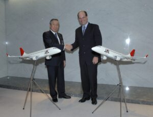 Cerimônia de assinatura de acordo com a Japan Airlines