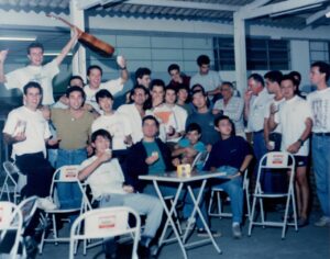 Sidney Breyer foi diretor da Comissão de Viagens (CV). Na foto com seus colegas da T93 na viagem para a Europa, onde puderam visitar diversas empresas